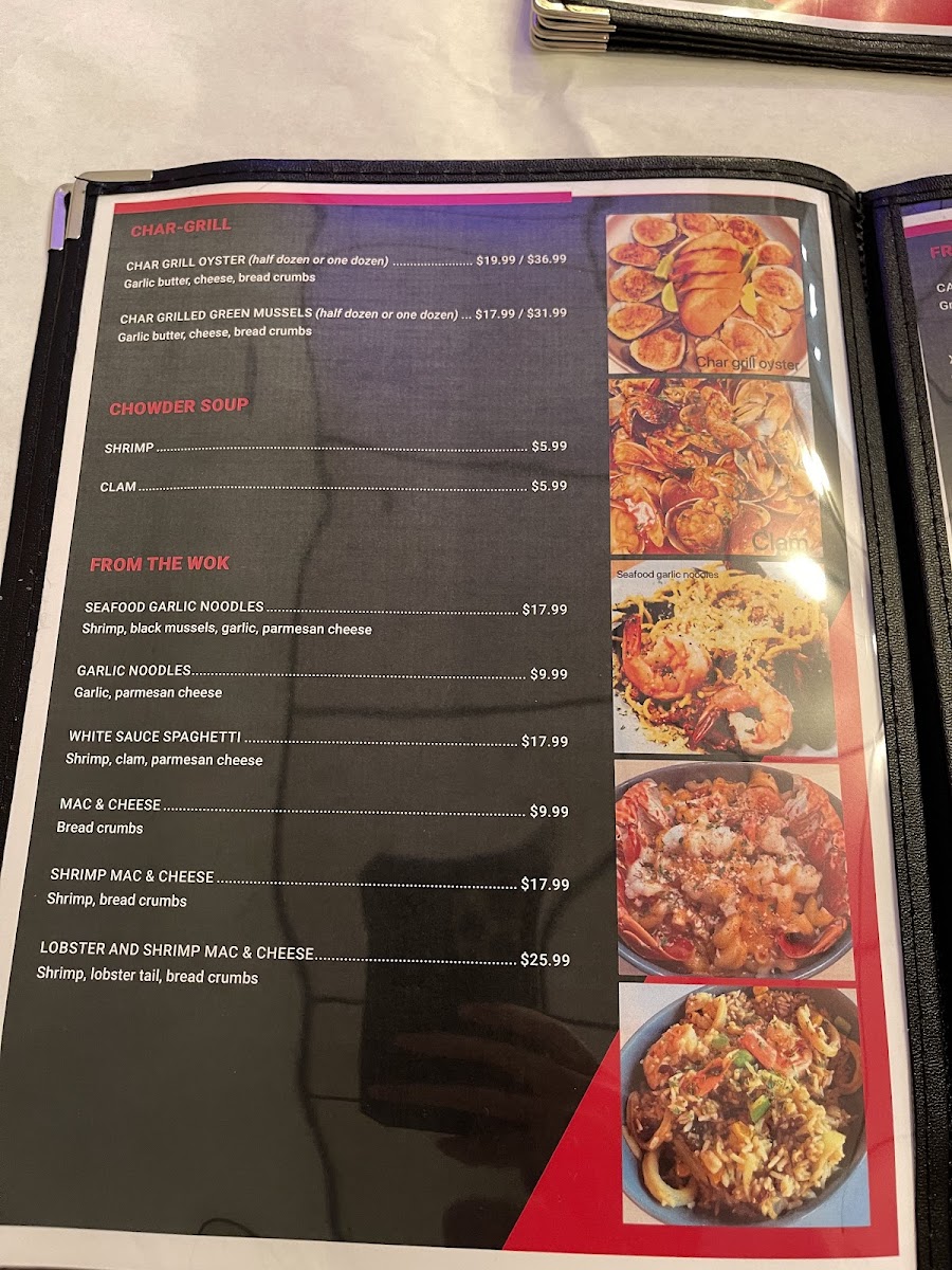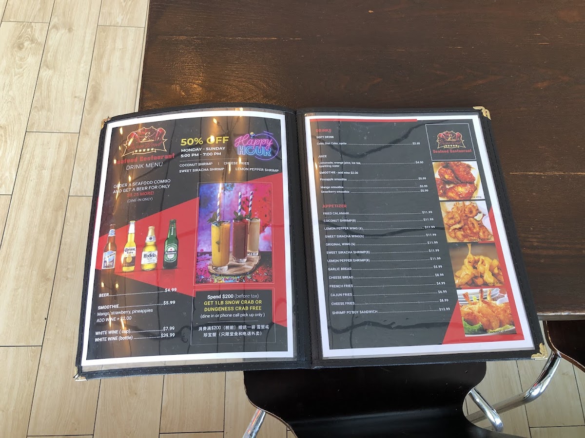 5 LB Shrim 5 LB Clam 2 LB Snow Crab --5 LB Garlic Nooldes --1 LB Balck Mussel --1 LB Free Crab. 5LB虾 5LB花蛤 3LB蟹 1LB黑青口 5LB蒜蓉面